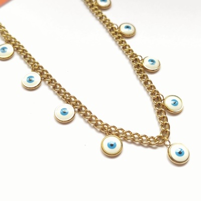 Colar em aço inox com cerca de 40cm e extensor de 5cm.
